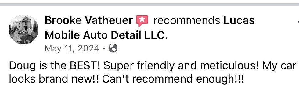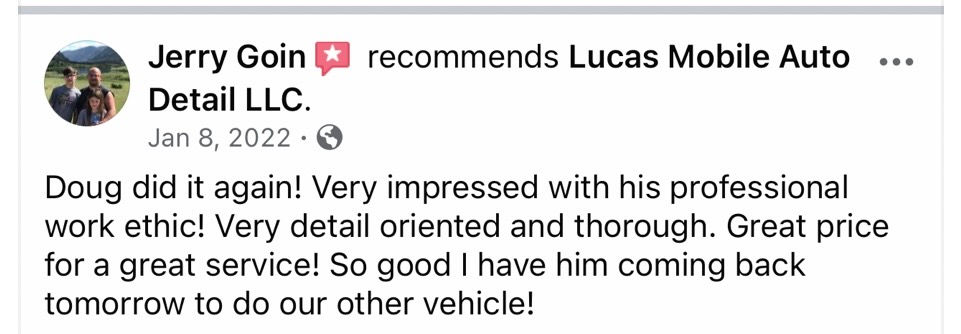 At Lucas Mobile Auto Detail LLC, we're proud to bring top car detailing services right to your doorstep! Our amazing team is passionate about treating every vehicle with the utmost care and precision, making sure your car looks as good as new. With years of experience under our belts, our love for auto detailing truly shines in every service we offer!